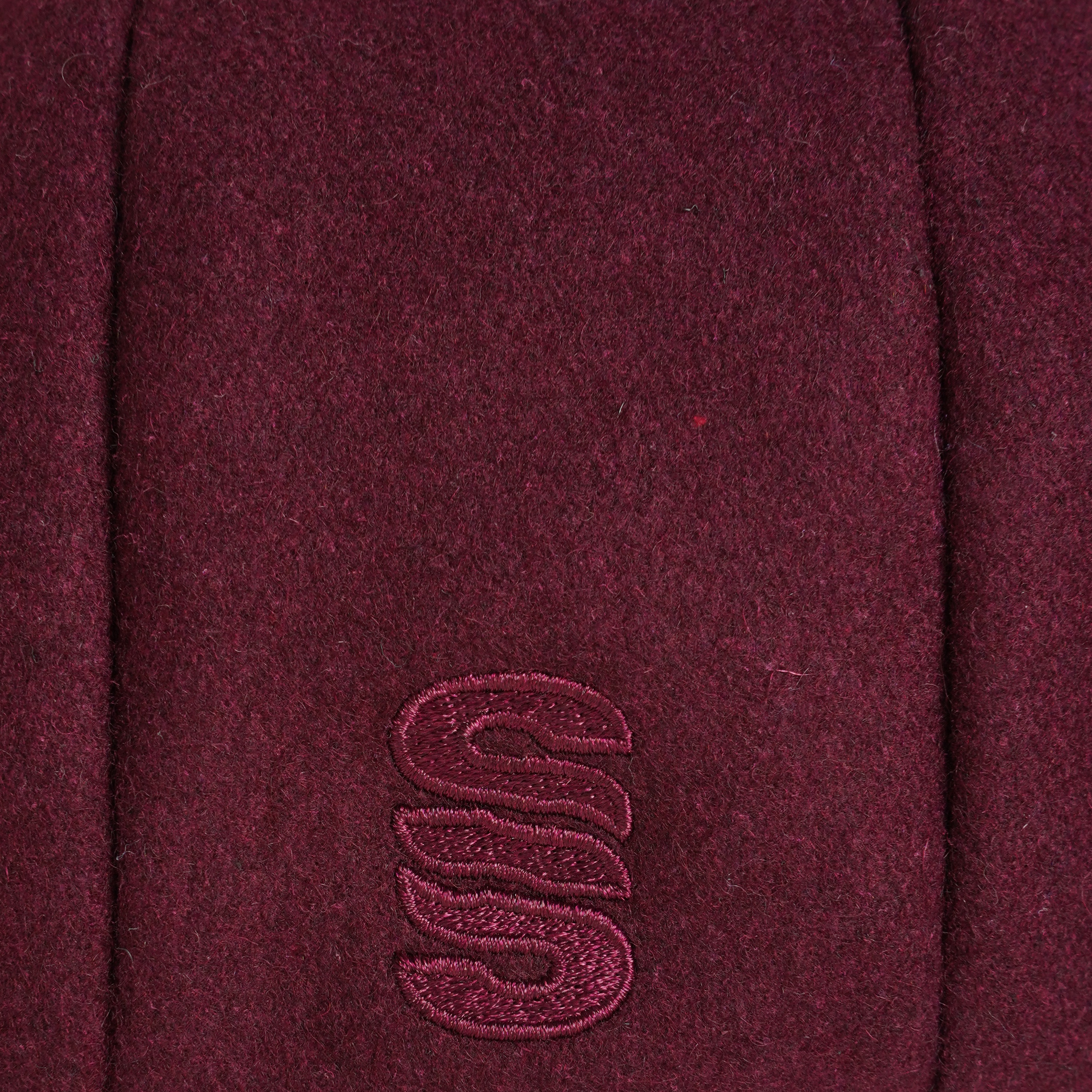 Melton wool baggy cap with elasticated back for extra comfortable and snug fit. Extra wide front panel to allow for embroidery.